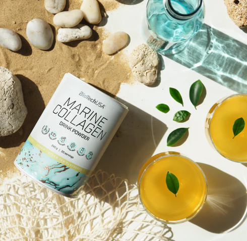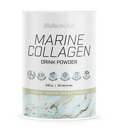 A Marine Collagen 84%- os halkollagén tartalmának köszönhetően, egy adag (12 g) italpor felhasználásával egy frissítő ital formájában napi 10 g kollagénhez juttatja a szervezetünket. A kollagént a szerveztünk termeli, azonban a kor előrehaladtával érdemes külső forrásokból is támogatni a képződését, jó minőségű kollagén termékek fogyasztásával. A C-vitamin hozzájárul a normál kollagénképzéséhez, ezen keresztül pedig nem csak a bőr és az erek, de a normál csontozat fenntartásához, a porcok normál állapotának és működésének, továbbá a fogak és a fogíny normál állapotának fenntartásához is. A citromos zöldtea ízesítésben elérhető kollagénital a napi szépségrutinod frissítő itala lehet!