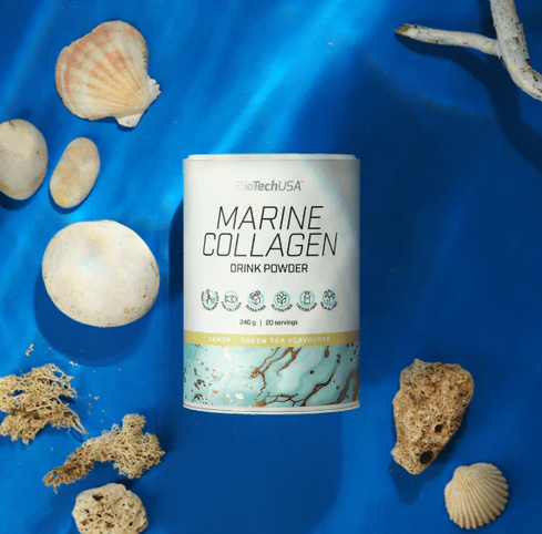 A Marine Collagen 84%- os halkollagén tartalmának köszönhetően, egy adag (12 g) italpor felhasználásával egy frissítő ital formájában napi 10 g kollagénhez juttatja a szervezetünket. A kollagént a szerveztünk termeli, azonban a kor előrehaladtával érdemes külső forrásokból is támogatni a képződését, jó minőségű kollagén termékek fogyasztásával. A C-vitamin hozzájárul a normál kollagénképzéséhez, ezen keresztül pedig nem csak a bőr és az erek, de a normál csontozat fenntartásához, a porcok normál állapotának és működésének, továbbá a fogak és a fogíny normál állapotának fenntartásához is. A citromos zöldtea ízesítésben elérhető kollagénital a napi szépségrutinod frissítő itala lehet!