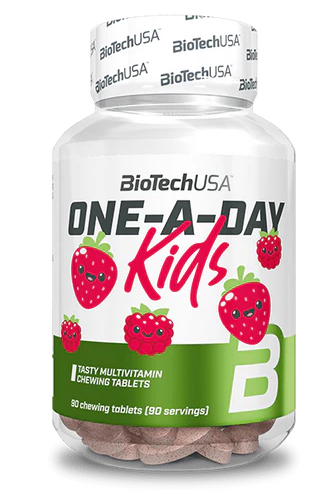 90 rágótabletta , Eper-málna ízű étrendkiegészítő multivitamin rágótabletta, 13-féle vitaminnal, 3-féle ásványi anyaggal, természetes eperporral, édesítőszerrel. 4 éves kortól szedhető.